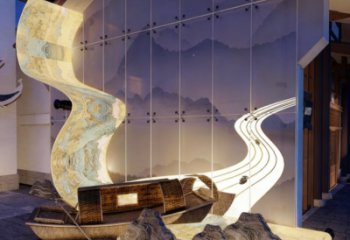 《絲路舟行》石雕與不銹鋼結合景觀雕塑