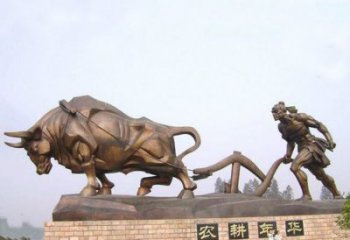 大型銅仿玻璃鋼農(nóng)耕文化犁地雕塑