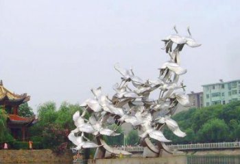 展翅騰飛,撫今追昔——展翅仙鶴公園動物銅雕