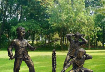 公園小區(qū)擺放玻璃鋼仿銅童趣兒童放鞭炮人物情景小品雕塑