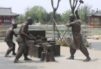 步行街的銅雕傳承傳統文化的銅雕打鐵人物