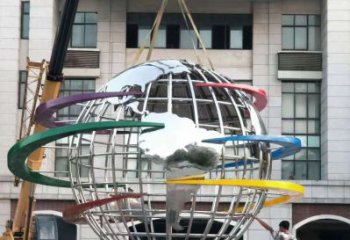 不銹鋼鏤空抽象景觀地球儀雕塑常常具有嚴謹的幾何秩序、精到的比例關系、完美的幾何雕塑感。為打破過于嚴肅的整體氣氛,抽象地球儀雕塑也是建筑師在環境、室內空間設計中經常應用的表現元素。這些雕塑不似古典建筑的的緊密融合,不銹鋼景觀地球儀雕塑常常是互相獨立、分離的關系。