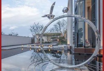 不銹鋼異性圓環(huán)雕塑——室外民宿水景裝飾
