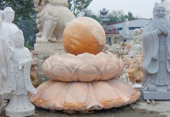 風水球轉動的身軀,代表著生命的靈動,不論單位或家中,景觀石雕晚霞紅風水球雕塑,代表風生水起,財源滾滾。球轉水流,水為財,石轉運到,有財源滾滾,時來運轉之意,而且萬象景觀石雕晚霞紅蓮花風水球雕塑,動靜結合,優美怡人。既有帶來好運的寓意,也是宜家裝飾品,石雕融合別墅風水球雕塑,不僅增加自然的美感,而且調節客廳空氣的濕度。