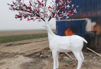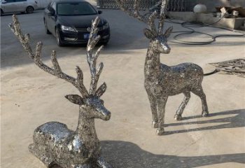 鏤空不銹鋼幾何梅花鹿雕塑,創意戶外擺件