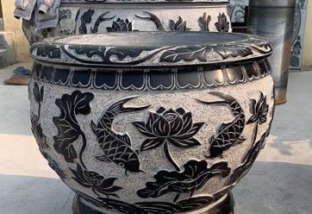 仿古庭院荷花鯉魚浮雕石雕缸雕塑