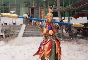 并且請回二位印度高僧同返洛陽弘法布教,孫悟空雕塑則是用白馬馱回。白馬寺山門前的兩匹白馬石雕,身高為175米,長22米,作低頭負重狀,仿佛在馱著經書。距今已有1900多年歷史的白馬寺在歷史的長河中,也經歷過幾度興衰。玻璃鋼孫悟空雕塑是極為雄偉的,但是因屢經戰亂,數度興衰,古建筑所剩無幾,現存的建筑大多數為明、清兩代修建。