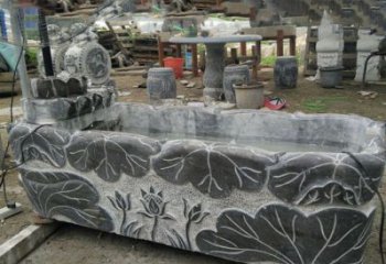 紅晚霞石雕園林景區(qū)浮雕荷花魚(yú)噴泉
