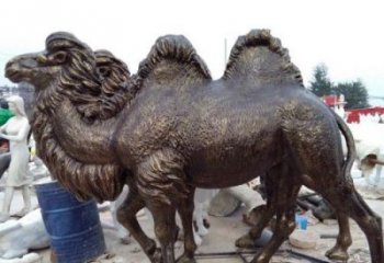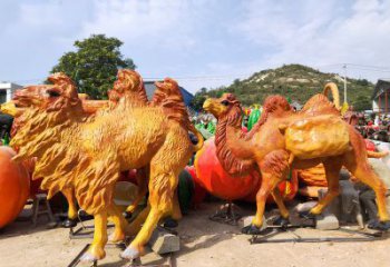 在公園里,有一只歪頭看著玻璃鋼玻璃創意駱駝雕塑,就像一只可愛的小駱駝,它似乎在欣賞著它周圍的美景。