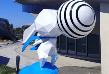 這是一座不銹鋼戶外景觀雕塑,以幾何切面塑白兔形象,綴金色裝飾,簡約現(xiàn)代,為場地添靈動(dòng)活力 。