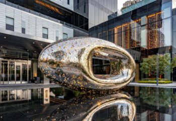 這組雕塑以 “柔石云嶼” 為形,是兼具實用功能的景觀雕塑:取卵石輪廓,用純白玻璃鋼塑出輕盈曲面,嵌不銹鋼肌理;作為創(chuàng)意雕塑,它既是藝術(shù)裝置也是公共座椅,以自然形態(tài)的當(dāng)代轉(zhuǎn)譯,柔化城市空間,實現(xiàn)藝術(shù)與生活的共生。