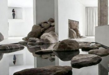 作為景觀雕塑,這件作品以 “水之韻律” 為核心,將液態的浪濤凝鑄成固態的藝術載體。材質選用不銹鋼,通過鏡面工藝賦予雕塑瑩潤的光澤質感,淺藍與奶白的漸變涂層,既模擬水波的澄澈層次,又在光線折射中與周圍環境相融共生。其形態是純粹的抽象表達:起伏的曲線復刻浪峰與浪谷的動態張力,邊緣鎏金線條如波光躍動,中央蓄水與滴落的水流,則讓靜態雕塑擁有了 “流動” 的生命感 —— 當水幕墜入下方池面,視聽聯動的體驗,讓空間多了自然的呼吸韻律。以不銹鋼雕塑的現代質感適配建筑空間,又借抽象形態消解了硬質材料的冷硬,鏡面效果更讓雕塑成為環境的 “二次畫布”,隨晨昏光影、周遭景致的變化,呈現出不同的視覺層次,最終實現 “藝術介入空間,空間因藝術生動” 的理念。
