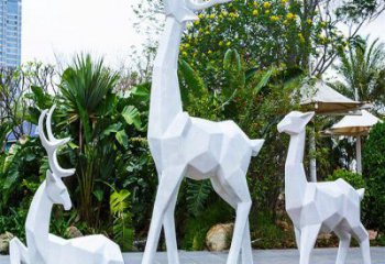 幾何玻璃鋼梅花鹿雕塑是一種新型的雕塑藝術(shù),它利用玻璃鋼和玻璃,以及白色的梅花鹿塑造出幾何形狀的雕塑,在公園或其他公共場所裝飾,以抽象的方式表達出生活中的美好。