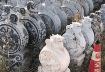 漢白玉鎮宅招財門墩抱鼓石雕塑是在石材墓碑的基礎上發展演變而來的。以前的墓碑只是用石材制作成各種規格的板材,漢白玉抱鼓石雕塑就可以了。隨著社會的發展,獅子雕招財門墩抱鼓石雕塑對于墓碑的工藝要求也逐步提高。漢白玉鎮宅抱鼓石雕塑正是在這樣的形勢下產生并被大量普及的。