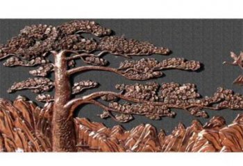 酒店裝飾藝術迎客松雕塑結合大理石創意浮雕