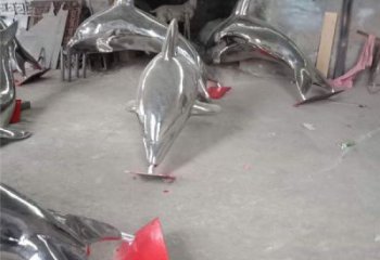 大型不銹鋼海豚雕塑噴泉水景擺件