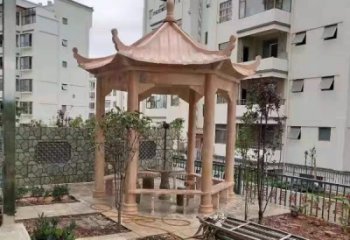 天然紅木雕刻涼亭,打造復古中式庭院休閑石亭