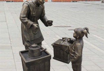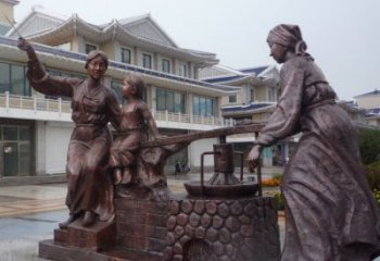 玻璃鋼仿銅民俗挑扁擔古人雕塑落地小品